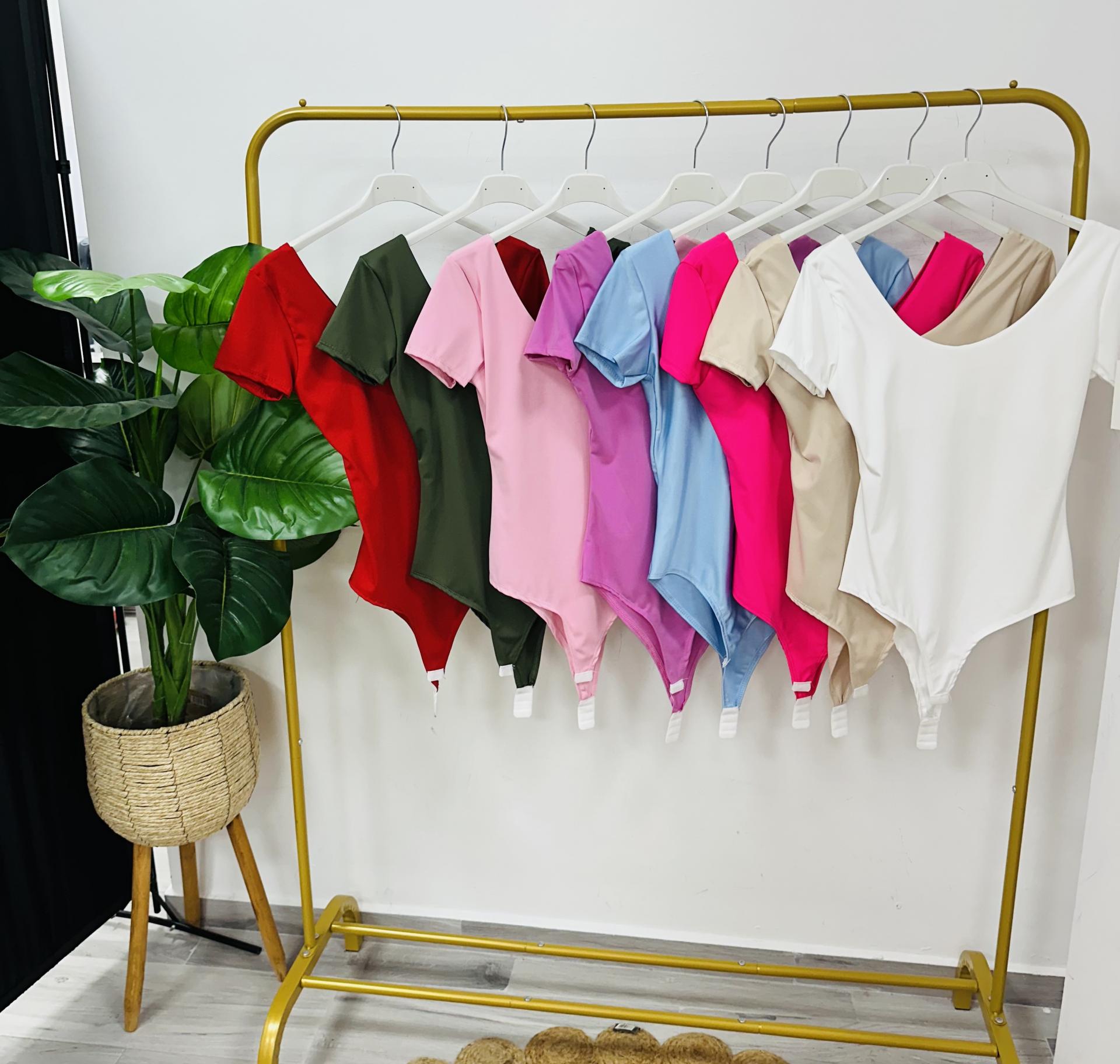 Body de licra fría con escote redondo y doble en el pecho de manga corta