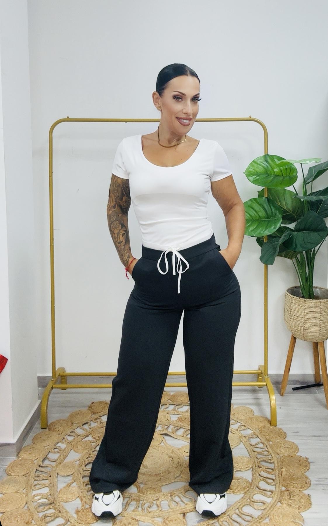 Pantalón de poliéster con doble cinturilla cordón y bolsillos chinos ,pata recta