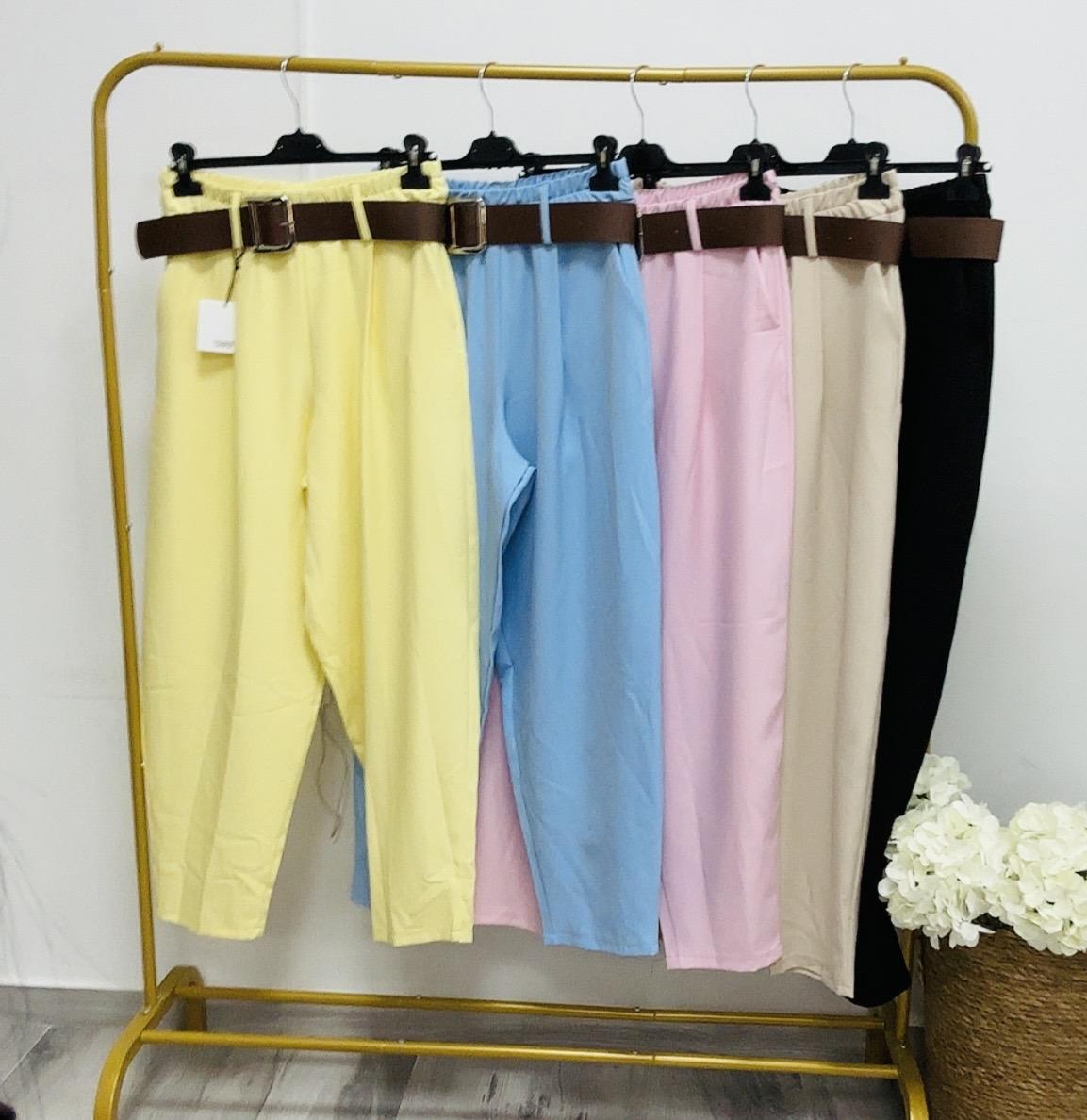 Pantalón de tela de sastre con forma de globo.contiene bolsillos ,goma en la parte trasera de la cintura y bolsillos .