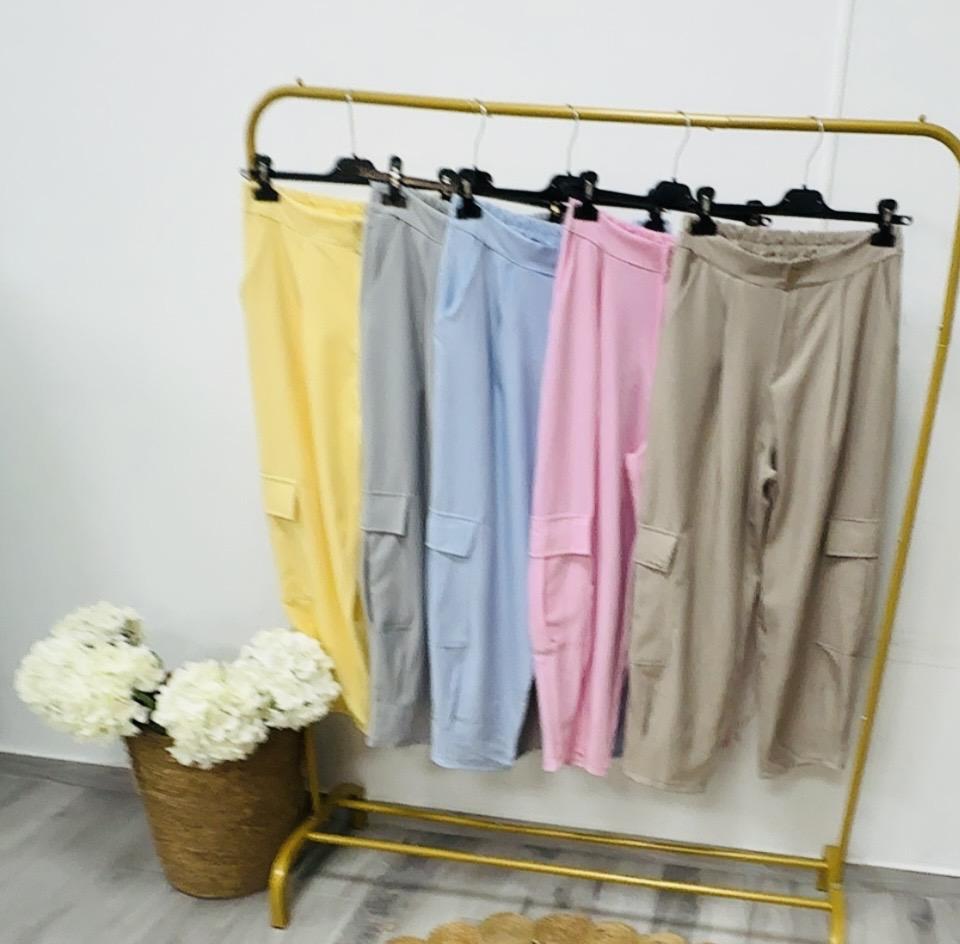 Pantalón de tejido sastre con forma de globo y bolsillos en los laterales de las rodilla,tiene goma en la cintura .
